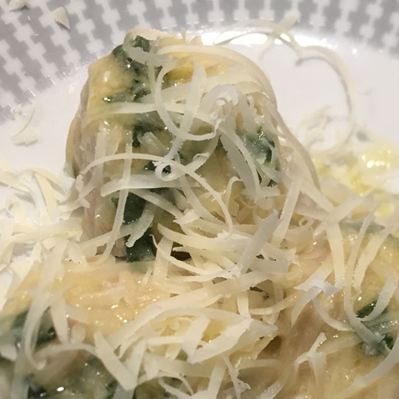 Gnudi in kochendes Salzwasser geben, Herd abschalten und ca. 5 Minuten ziehen lassen. Inzwischen Butter zerlassen, frische Salbeiblätter kurz darin rösten. Gnudi tropfnass zur Salbeibutter geben und durchschwenken. Mit geriebenen Parmesan sofort servieren.