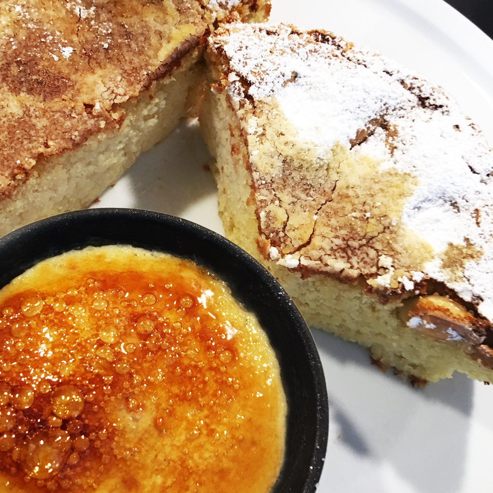 Mandeln fein mahlen, ein paar ganze zurückbehalten. Milch mit Zucker Orangenblütenwasser, Zimt und Bittermandelaroma aufkochen, die gemahlenen Mandeln zugeben, nochmals kurz aufkochen und dann abkühlen lassen. Backofen auf 160°C Umluft vorheizen und Springform mit 17 cm Durchmesser fetten. Eier trennen. Eiweiße mit Salz steif schlagen. Eigelbe mit Puderzucker, schaumig rühren. Eigelbmasse mit der Mandelmasse verrühren, dann auf drei Mal den Eischnee unterheben. Masse in die Form füllen, dick mit Kristallzucker bestreuen und mit ganzen Mandeln belegen. Ca. 40 Min. backen und auf einem Kuchengitter auskühlen lassen. Vor dem Servieren mit Puderzucker bestreuen.