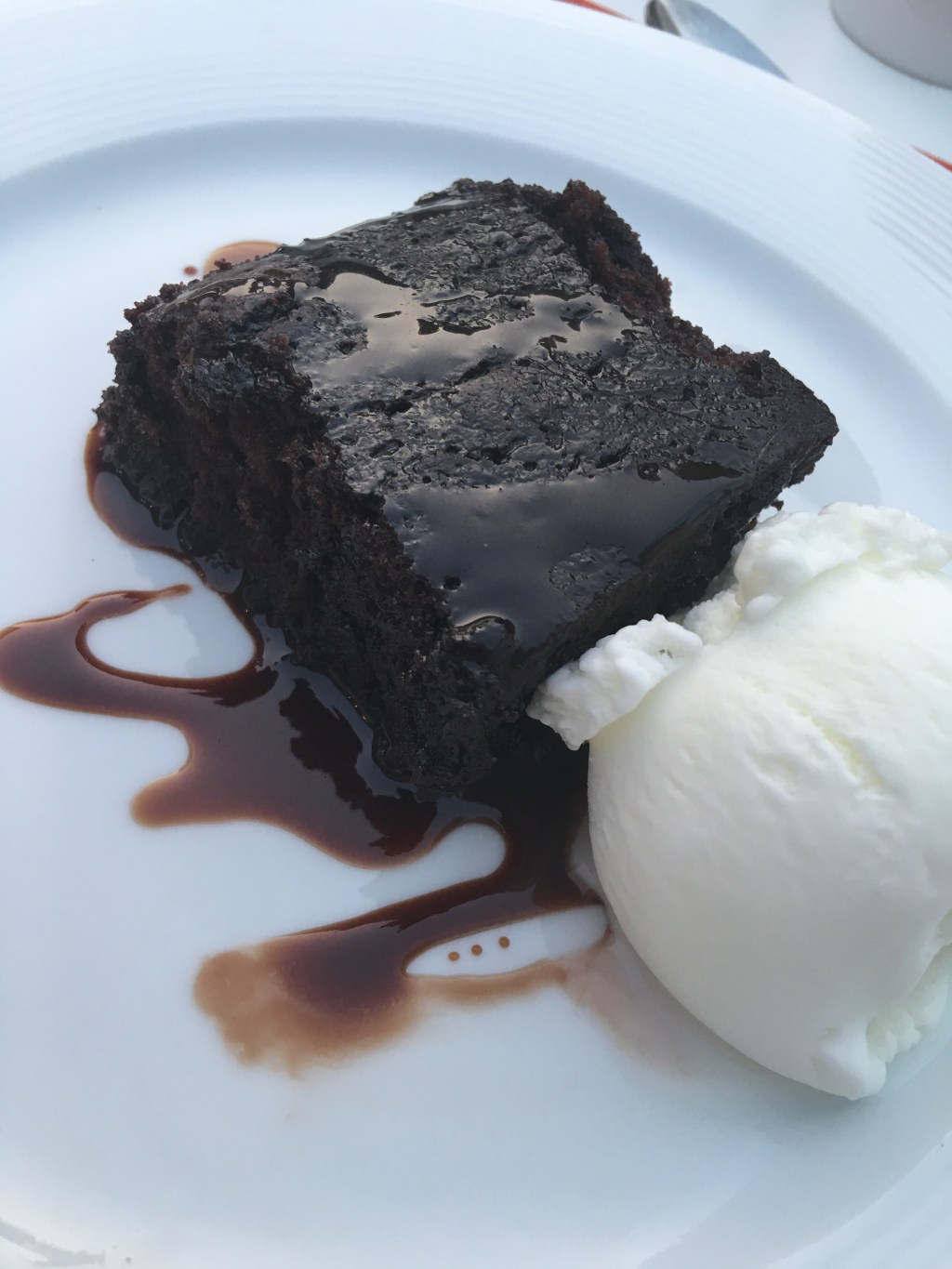 Schokoladenkuchen mit Vanilleeis auf Griechisch