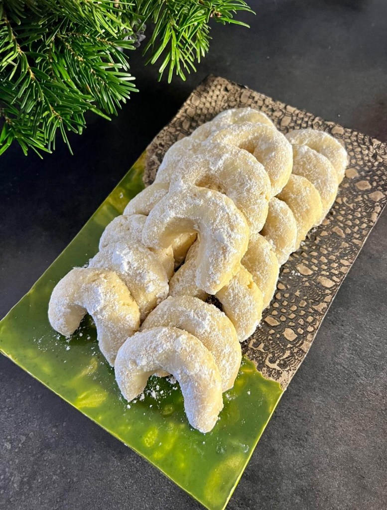 Tipp: Achtung, die Kipferl sind sehr zerbrechlich, auch nach dem Abkühlen sollte man sie beim Wälzen in Puderzucker noch sehr vorsichtig behandeln, sonst gibts Bruch.